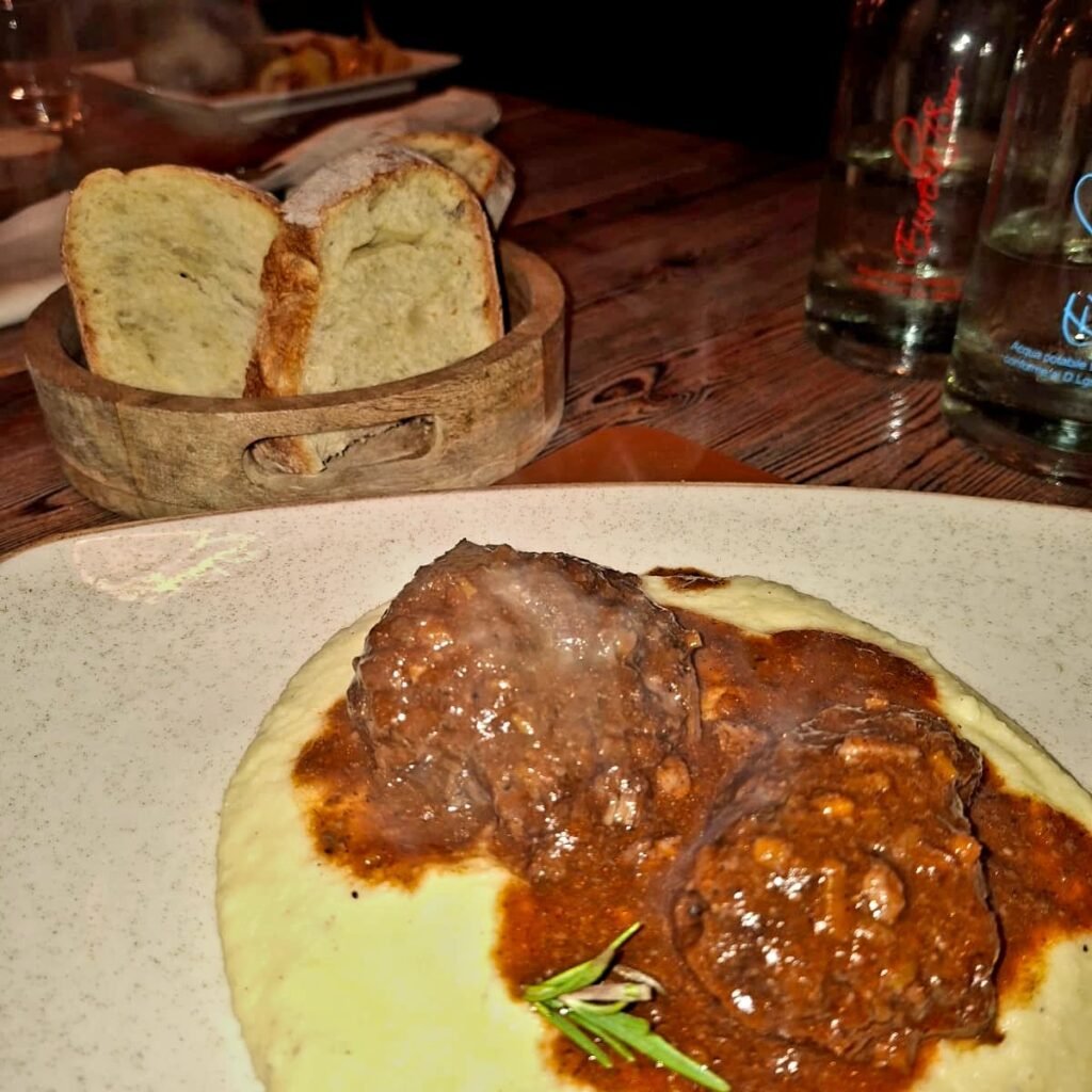 La guancia di maiale al vino rosso servita con purea di patate fatta in casa è un piatto che conquista per la sua morbidezza e profondità di gusto. La carne, tenerissima e succosa, si scioglie letteralmente in bocca, sprigionando tutto l’aroma del vino rosso e delle lunghe cotture tipiche della cucina toscana tradizionale. La purea, cremosa e genuina, rivela un tocco casalingo autentico — solo un po’ di pepe in più del previsto, ma che non compromette l’equilibrio complessivo del piatto. Prezzo: 22,00€