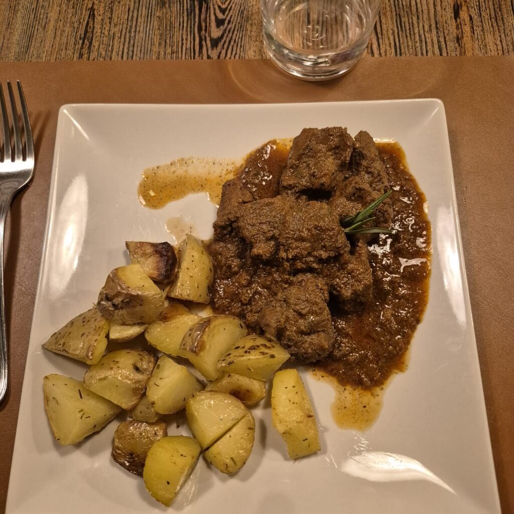 Spezzatino di cinghiale in umido con patate al forno – Il trionfo della “puccia”